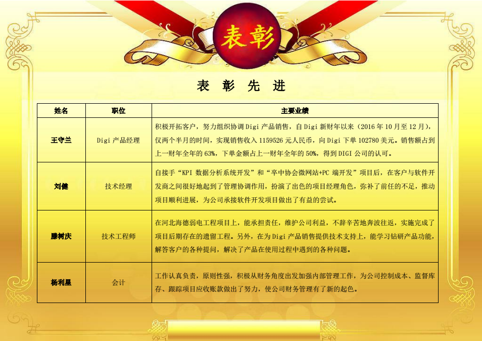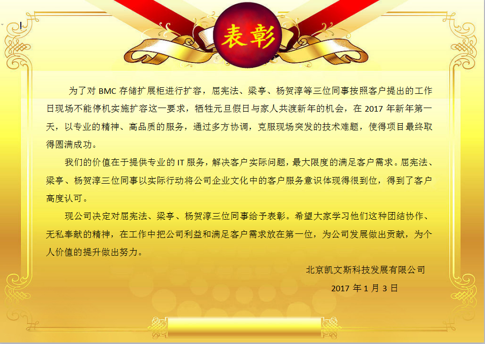 凱文斯在總結2016的同時也迎來了嶄新的2017,公司對該年(nián)度裡(lǐ)表現優異的員(yuán)工(gōng)予以公開(kāi)展示表彰,鼓勵表現優異的員(yuán)工(gōng)再接再厲,再創佳績;同時也激勵著(zhe)其他員(yuán)工(gōng),創優争先,努力在提升、實現自(zì)身價值的同時也為(wèi)公司創造最大價值。
